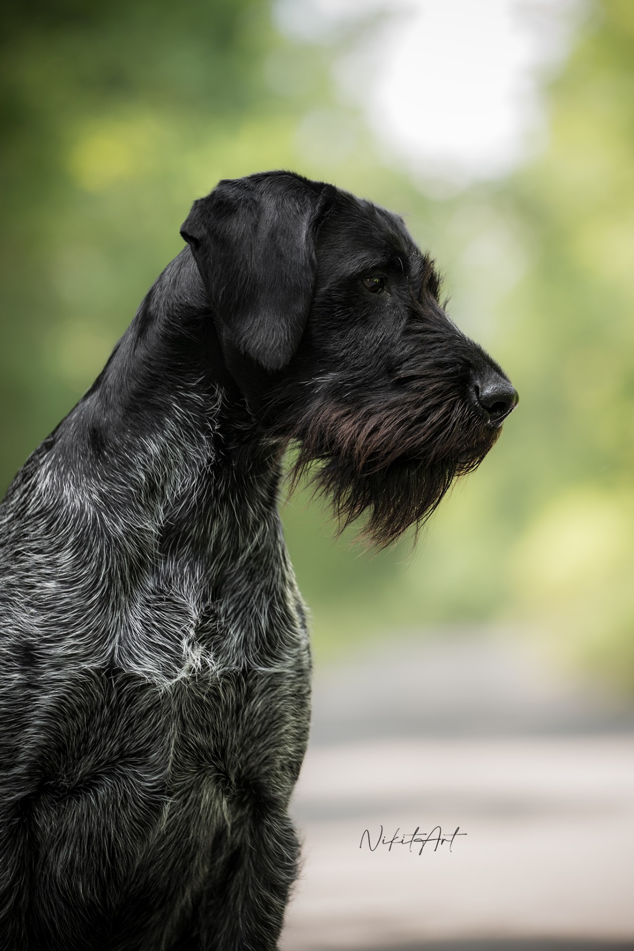 Mambička je fena velmi výrazného temperamentu, s kvalitním nosem a zálibou pro práci na stopách - vlečky, barvy.
