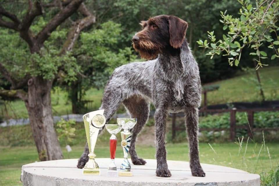 10. 12. 2017 - DUO CACIB Nitra - třída - stredná - V1 / 1, CAC, CACIB, BOB Posudek - ušlechtilý plemenný typ, standardní rámec, samičí hlava, typického ucha, výrazný kohoutek, hluboký hrudník, strmější lopatka, dobré úhlení zadních končetin, typická barva a srst, v pohybu elegantní. - Wojciech Burski